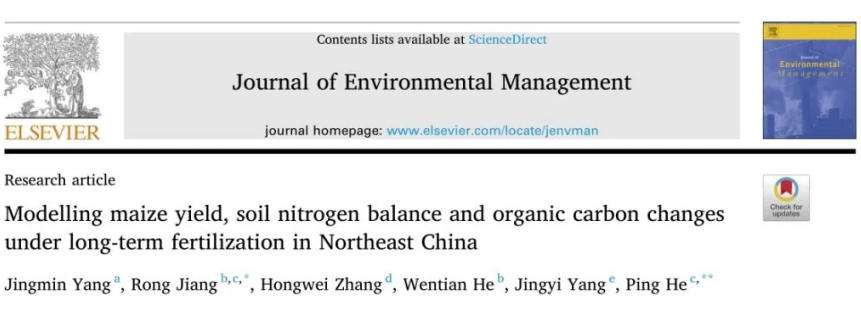 近日,吉林农业大学杨靖民教授在Journal of Environmental Management发表了题为“Modelling maize yield, soil nitrogen balance and organic carbon changes under long-term fertilization in Northeast China”的研究论文。