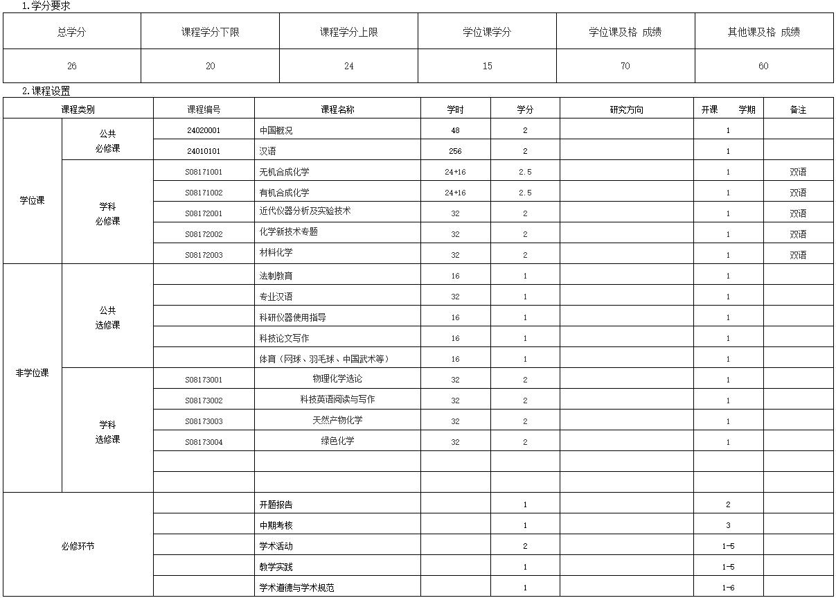 十、应用化学二级学科培养方案自2020级硕士研究生开始执行。