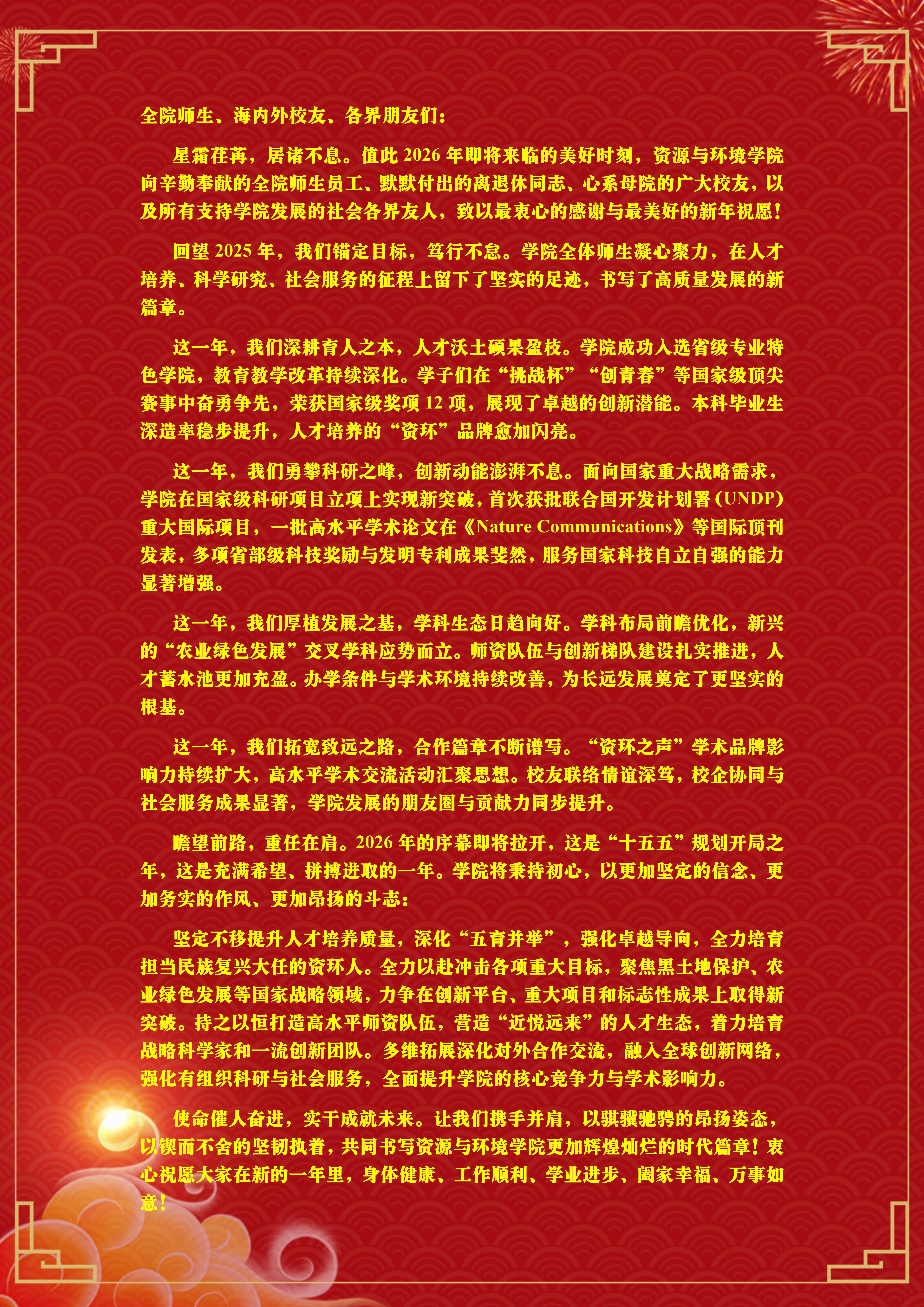 资源与环境学院2026年新年贺词