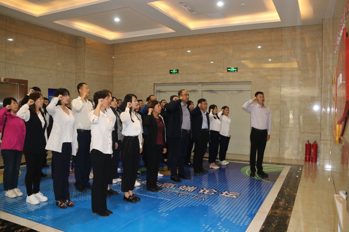 在中国农业大学梨树实验站,全体党员同志观看了宣传短片后,参观了中国黑土地博物馆,了解黑土地农耕文化与发展现状。随后全体党员面对党旗,重温入党誓词,庄严宣誓。