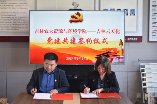9月24日,吉林农业大学资源与环境学院与吉林云天化农业发展有限公司院企党建共建签约仪式在吉林云天化会议室举行。学院党委书记许霄鹤、副书记王鹏,吉林云天化党总支书记、副总经理吴刚,行政职能党支部书记刘雪峰以及双方党员代表、业务骨干出席签约仪式。
